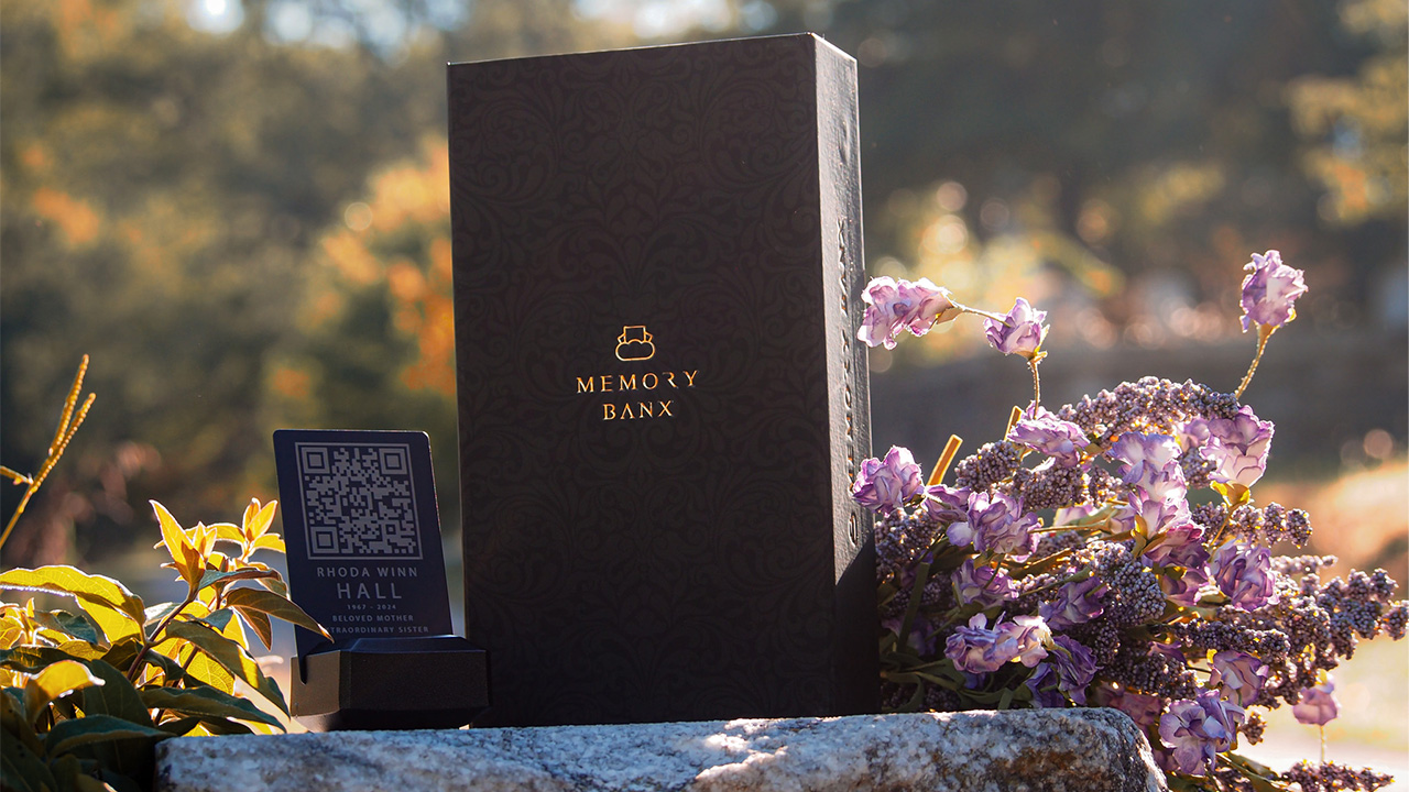 We provide a convient way to access your gallery via QR (quick response) code or by sharing the url link via text message, email or social media. Each order includes two Memory Banx Cards: one for placing on the tomb face and another paired with our Memory Card Holder, perfect for displaying anywhere you choose.